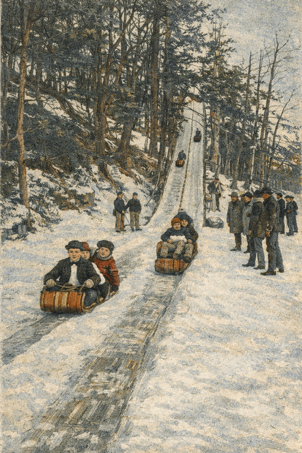 Nearly one thousand people turned out for tobogganing alone. Some participants, the paper noted, would “rather miss lunch” than give up an hour or two of downhill speed. A half-minute shoot dropping nearly a hundred feet, followed by a half-mile glide over smooth ice, then a brisk walk back uphill—only to repeat it all again—was said to “add life and health to every one.”
