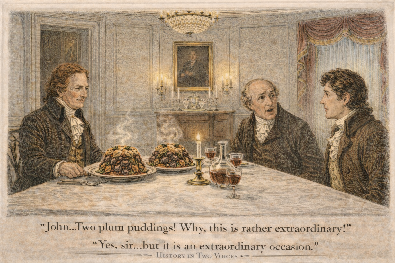 The story also captures something personal and human about the world of early American politics. Great statesmen debated principles, but they also shared meals, traded stories from their youth, and occasionally celebrated a special guest with two plum puddings instead of one.