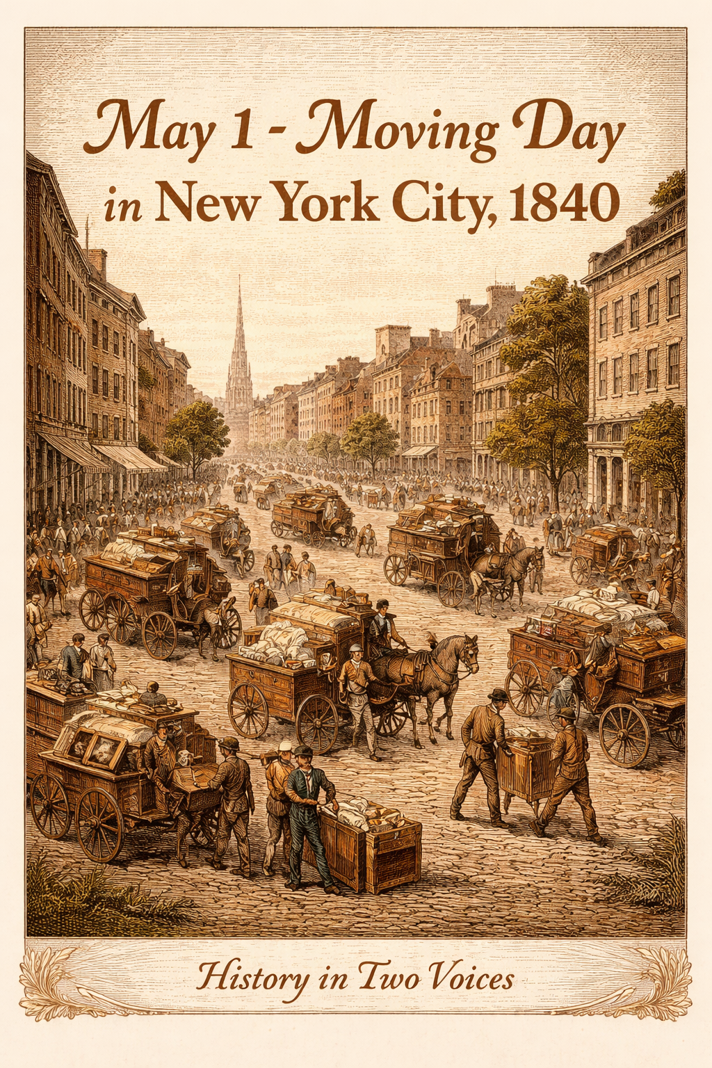 On May 1st, New Yorkers participated in Moving Day, a chaotic but familiar tradition where entire neighborhoods shifted because most rental agreements started on May 1st. The streets were filled with horse-drawn carts carrying furniture and household goods. This event wasn’t just about moving belongings; it was a snapshot of the city’s constant flux, where families and businesses rearranged themselves to make room for the city’s growing population.